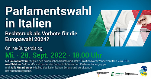 „Parlamentswahl in Italien – Rechtsruck als Vorbote für die Europawahl 2024?“ - Online-Bürgerdialog am 28.09. um 18 Uhr
