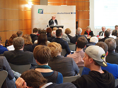 Die Flüchtlingskrise stand im Fokus des gemeinsamen Bundesausschusses von Europa-Union und Jungen Europäischen Föderalisten am 7. November in Berlin. Die Delegierten stellten einen Forderungskatalog auf, der eine gemeinsame europäische Asylbehörde ebenso umfasst wie die Errichtung humanitärer Zugänge und eine bessere Ausstattung der Vereinten Nationen und ihrer Unterorganisationen zur Finanzierung der Arbeit in den Flüchtlingslagern. » weiterlesen