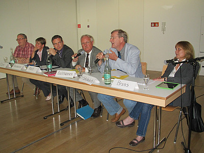 Zum Abschluss der Veranstaltung betonten die Gäste auf dem Podium - auch unterschiedlich gefärbt - die für sie besonders wichtigen Schwerpunkte, um Europas Zukunft zu sichern. Markus Koob betonte, das zwei ihm wichtige Themen nicht angesprochen worden seien, nämlich der europäische Datenschutz und die geplante Freihandelszone EU-USA. Dr. Achim Schabedoth hielt es für unumgänglich, die Finanzmarktabhängigkeit der Politik bei der Lösung der Probleme zu beenden, um wirklich politisch handlungsfähig zu sein. Natascha Baumann legte Wert auf eine EU, deren Grundlagen der Wettbewerb sei, die weniger Agrarmittel ausgeben solle, dafür aber mehr für Forschung und Entwicklung. Jutte Bruns verdeutlichte die großen Aufgaben, die zu lösen sind im Bereich Klimaschutz, Energiewende und bei den Möglichkeiten der Steuerflucht. Steffen Etzel hielt es mit der "Ausbeutung", die in Europa aufhören müsse.