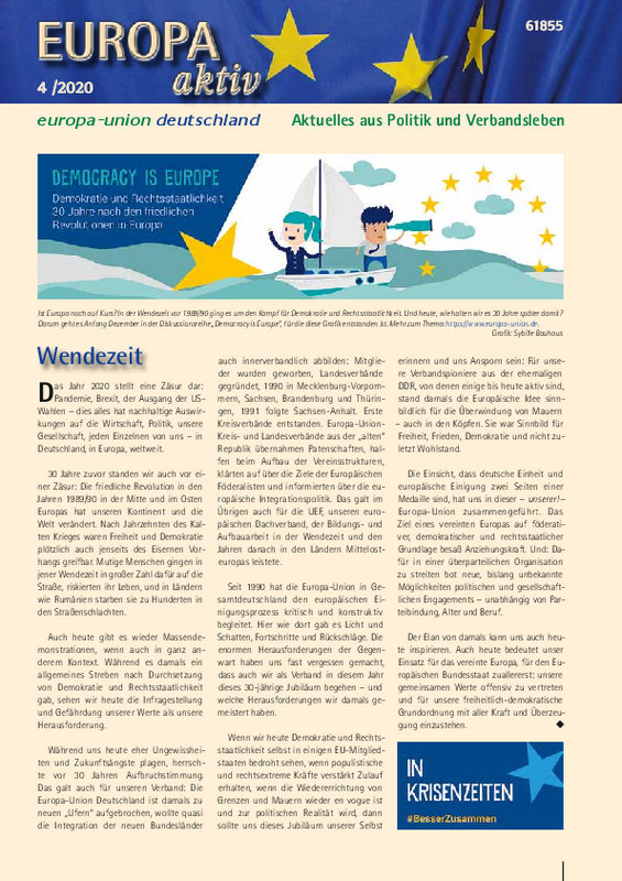 Auf den Seiten der Landesverbände geht es wie immer bunt und vielfältig zu. Während in Mecklenburg-Vorpommern schon die Zeichen auf Landtagswahl stehen und europapolitische Forderungen an die Kandidaten entwickelt wurden, wurde in Rheinland-Pfalz grenzüberschreitend gefeiert. Anlass war hier die Wieder-Öffnung der Grenzbrücke nach Frankreich. 2020 scheint ein Jahr der Déjà-vus zu sein. Viel Freude bei der Lektüre!