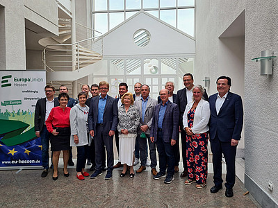 Der Höhepunkt am Vormittag war eine Podiumsdiskussion mit dem Thema "Zukunft Europas" mit ursprünglich vier hessischen Landtagsabgeordneten. Es waren letztlich nur zwei anwesend.: Tobias Utter (CDU) und Stefan Grüger (SPD). Beide waren der Meinung, dass die Einigung Europas bedingt durch die vielen Krisen weiter vorangetrieben werden müssten. Dazu sei u.a. ein Konvent notwendig, der die Einstimmigkeit im Europäischen Rat abschaffen müsse, für ein Initiativrecht des Europäischen Parlamentes zu sorgen habe und transnationale europäische Wahllisten einführen müsse. Ab Mittag wurde es dann spannend, denn einige Kreisverbände hatten beschlossen, den alten Vorstand in den Ruhestand zu schicken. Der Coup gelang nicht. So wurde Thomas Mann, ehemaliger MdEP, erneut als Vorsitzender und Hildegard Klär, unsere Kreisvorsitzende, erneut als eine der fünf stellv. Vorsitzenden wiedergewählt.