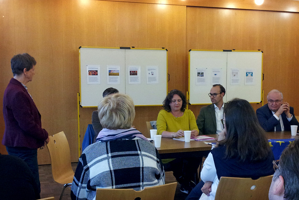 Hildegard Klär bemängelte, dass die Kommunen in den Institutionen der EU im Abseits stünden, obgleich die europäische Rechtssetzung massive Auswirkungen auf die Möglichkeiten und Grenzen des kommunalen Handelns habe. „Wie können sich die Kommunen mehr Gehör in der EU verschaffen“, fragte sie die Kommunalpolitiker. Es bestand Konsens darüber, dass der Europäische Ausschuss der Regionen (AdR) als beratende Einrichtung der EU den Kommunen ein förmliches Mitspracherecht bei der Gesetzgebung in Europa verschaffe, wodurch die Anliegen von regionalen und lokalen Behörden respektiert würden. Der Ausschuss ermögliche es den Kommunen außerdem, sich gemeinsam in EU-Debatten zu Fragen wie Wachstum und Beschäftigung, Klimawandel, grenzübergreifende Zusammenarbeit, Entwicklung und Subsidiarität einzubringen.